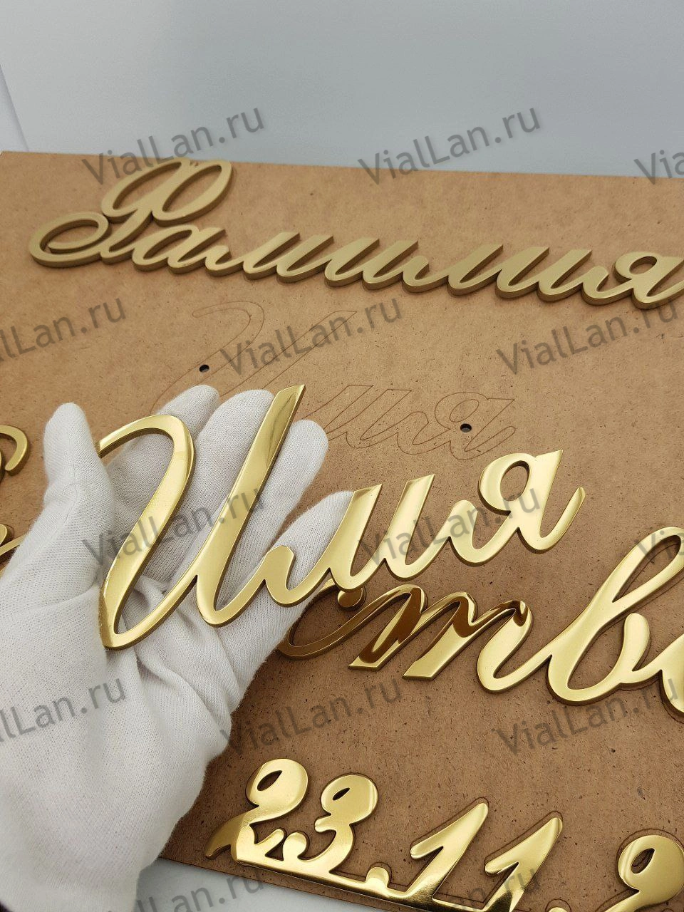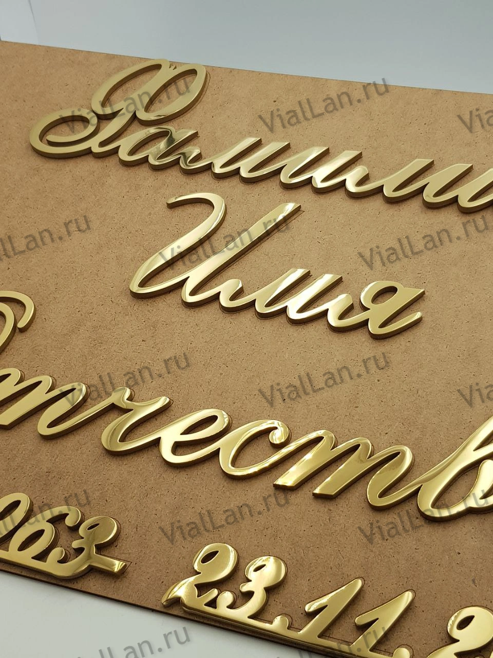 Лазерная резка позволяет создавать изящные курсивные шрифты и целые фразы прописью.