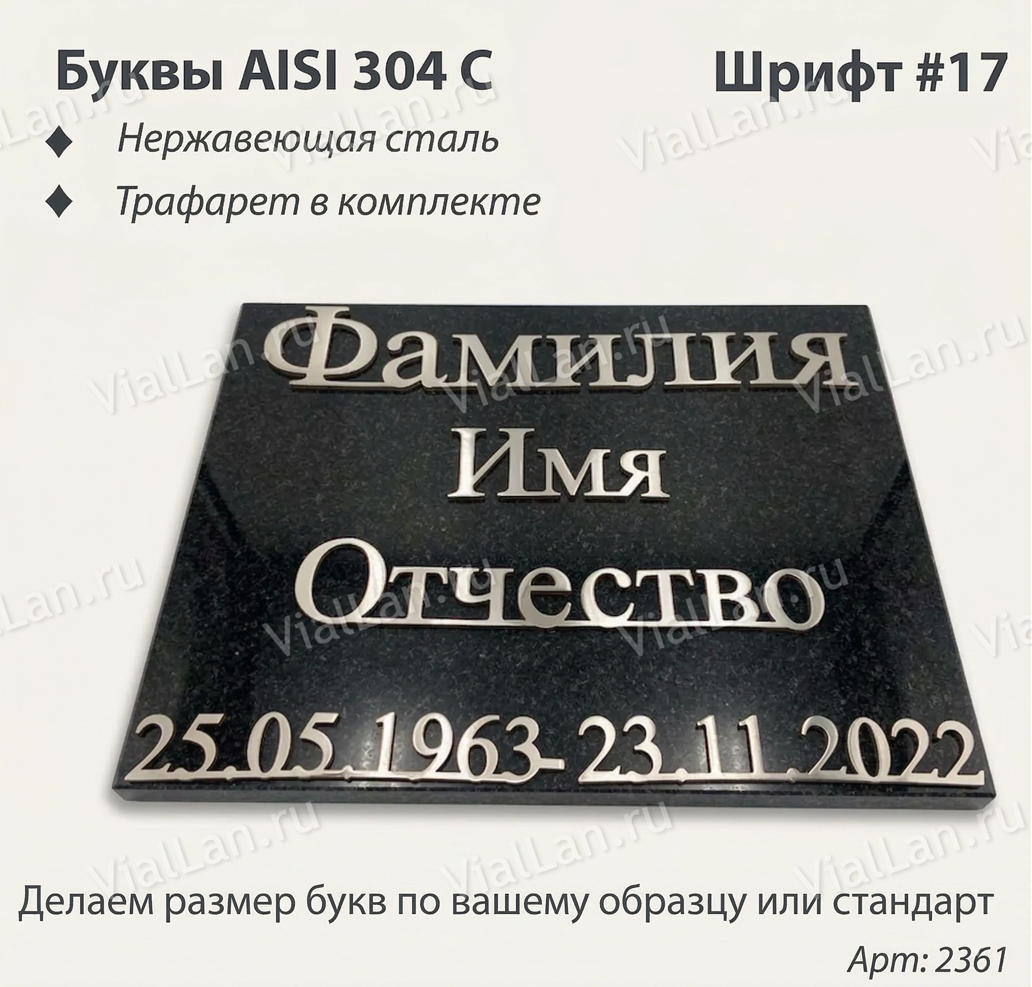 Оформление памятника металлическими буквами придает мемориалу законченный и благородный вид. Объемные символы из нержавеющей стали разительно отличаются от обычной гравировки — они создают игру света и тени, делая надпись читаемой под любым углом.