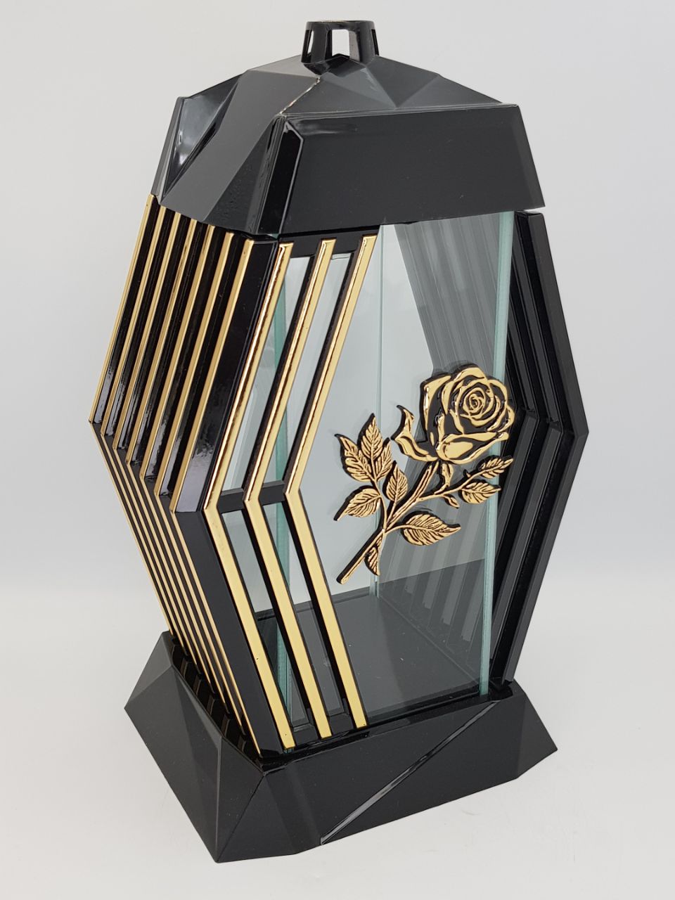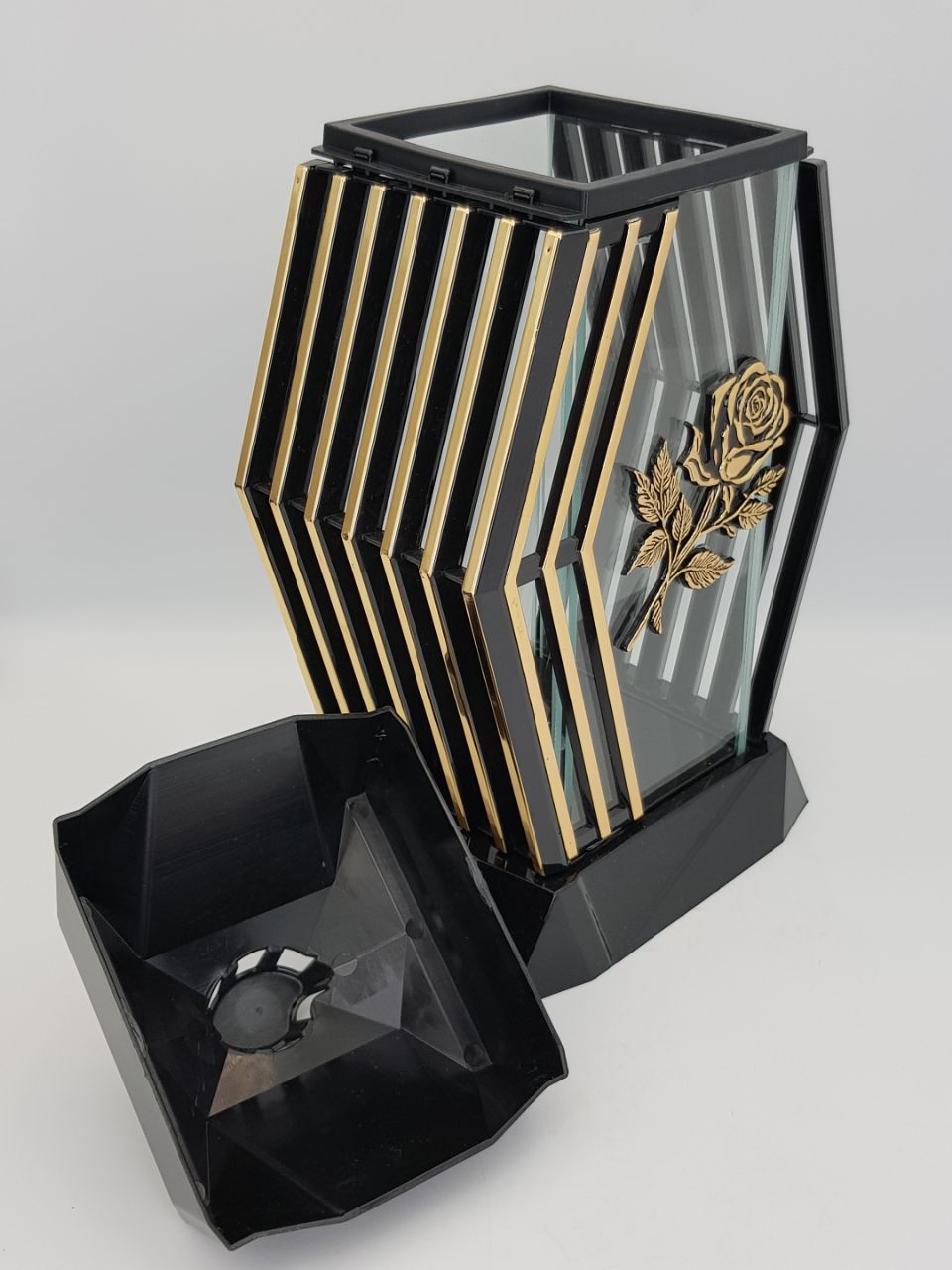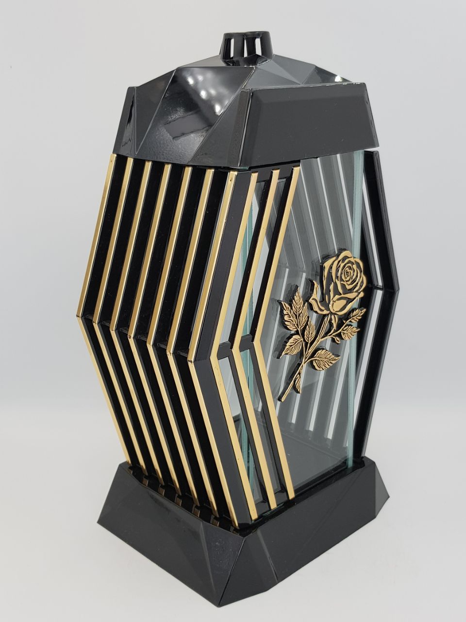 Лампада стеклянная Роза золото Lamel (размер 37х20х16,5 см, корпус ромбовидный, колба плоское прозрачное стекло, пластик черный, Роза золото, в упаковке 6 шт.) арт: 2461