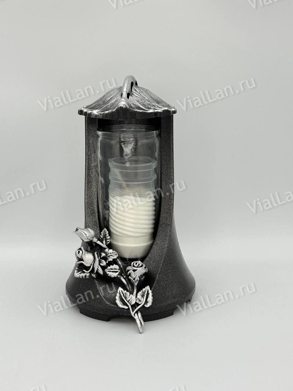 —Лампада стеклянная Роза Лист (корпус фигурный цилиндрический, колба цилиндрическая прозрачное стекло, пластик серебро, Роза серебро, лист серебро, в упаковке 6 шт.) арт:1977