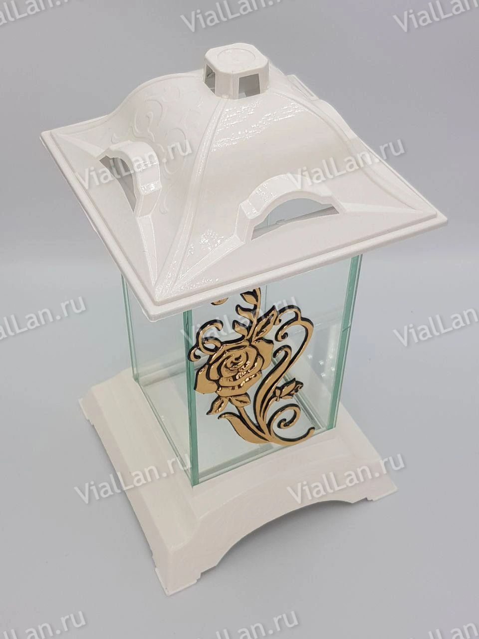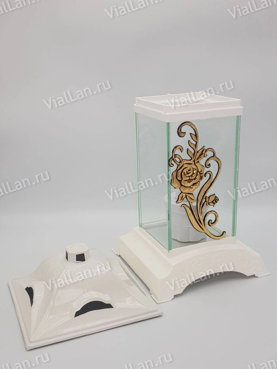 —Лампада стеклянная Ветка Роза Gart (корпус прямоугольный, колба плоское прозрачное стекло, пластик белый, Роза ветка золото, в упаковке 6 шт.) арт:1854