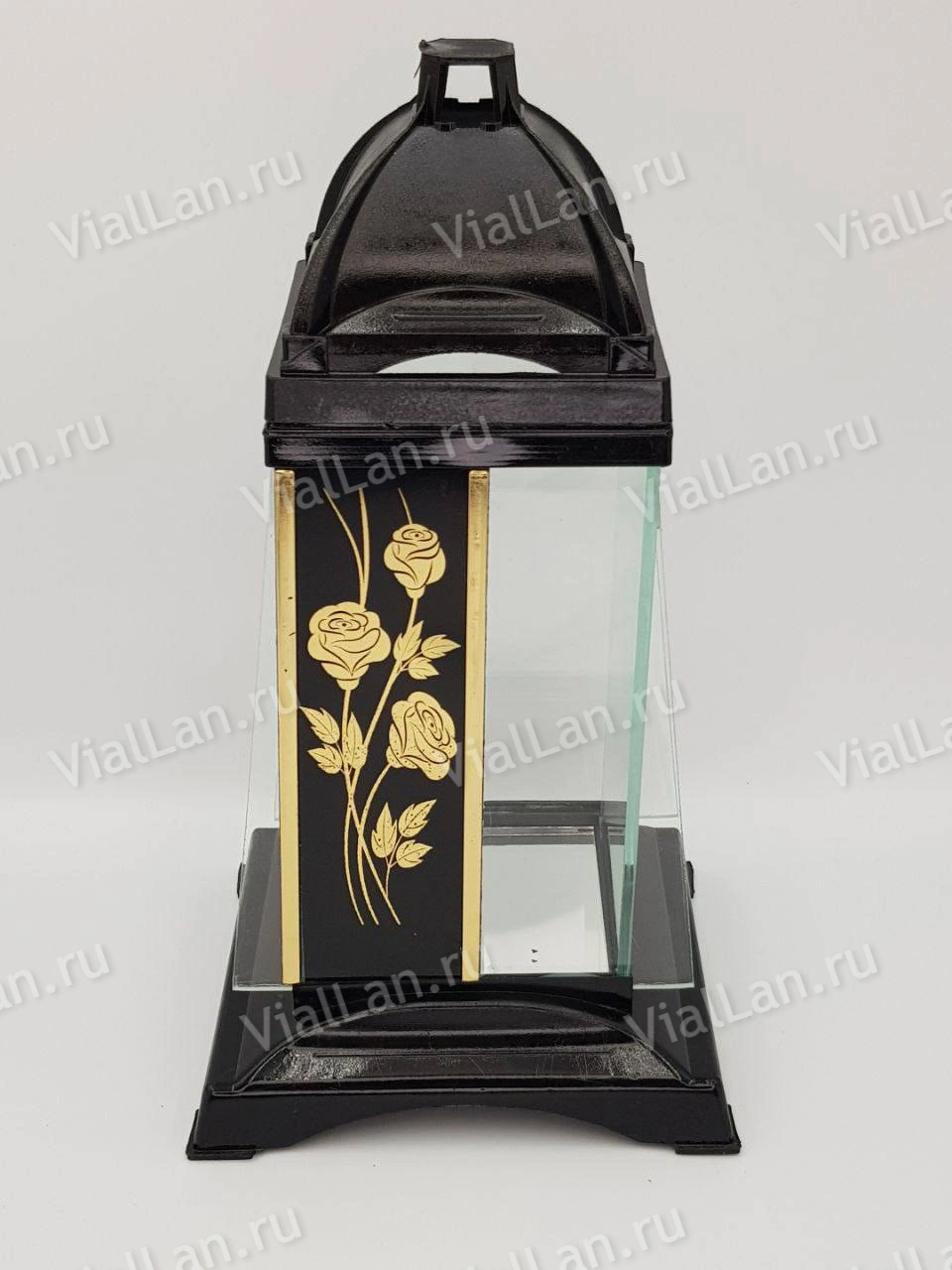—Лампада стеклянная Роза принт Gart (корпус пирамидальный, колба плоское прозрачное стекло, пластик черный, Роза принт золото, в упаковке 6 шт.) арт:2039