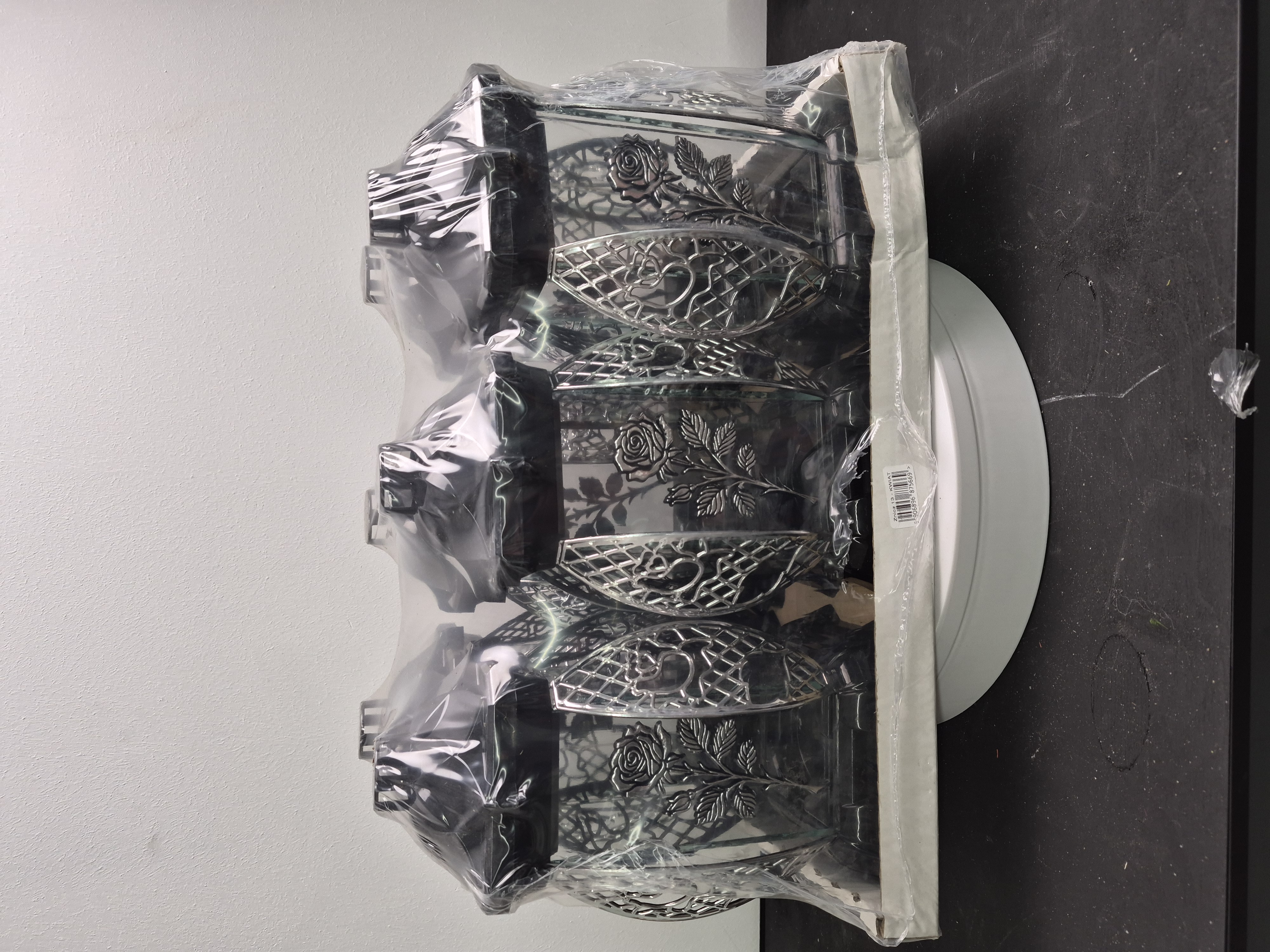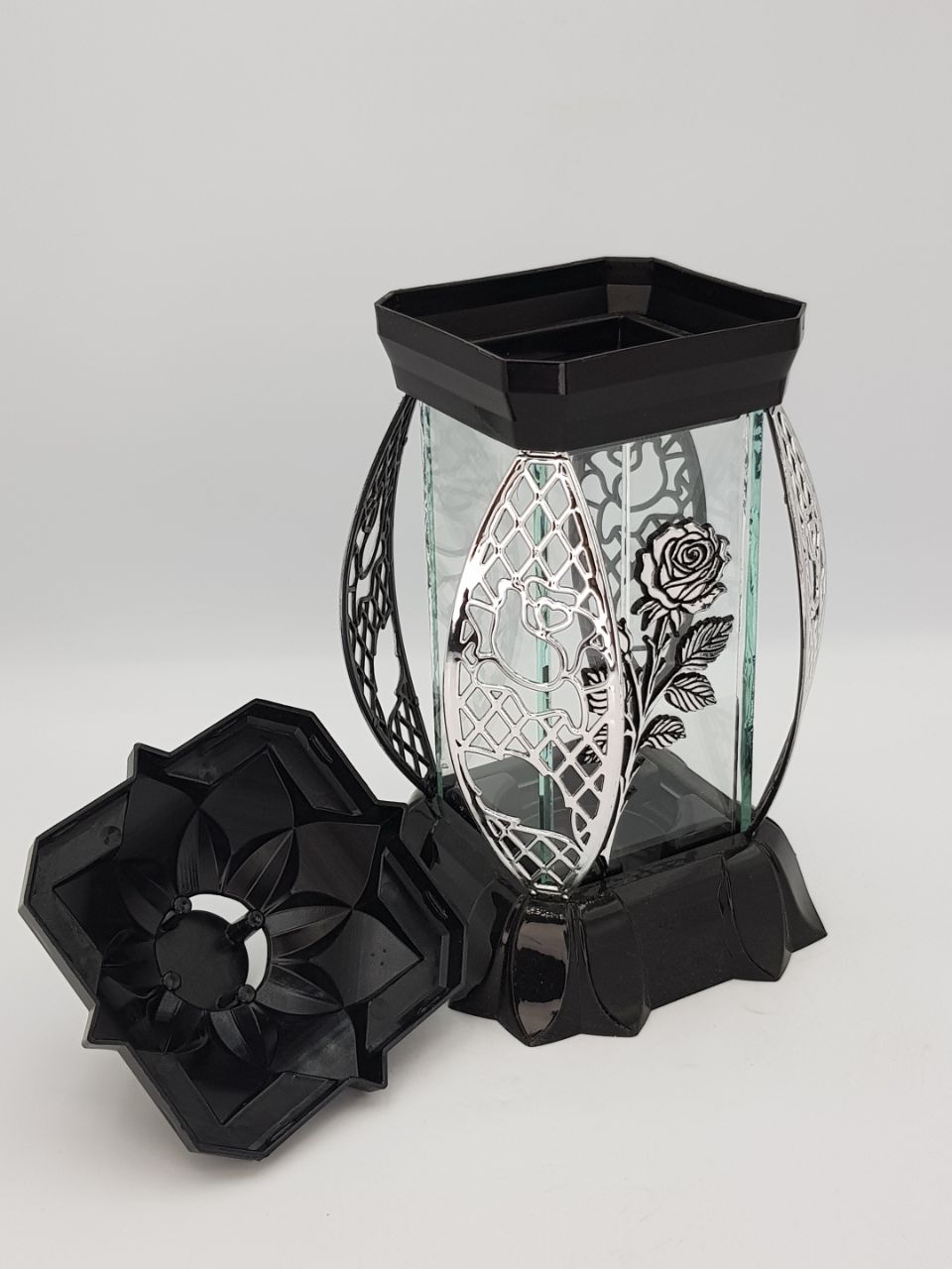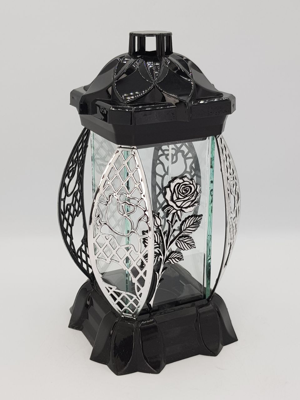 —Лампада стеклянная Роза серебро KWIAT (размер 26х12х12, корпус прямоугольный, колба плоское прозрачное стекло, пластик черный, Роза серебро, в упаковке 6 шт.) арт:2513