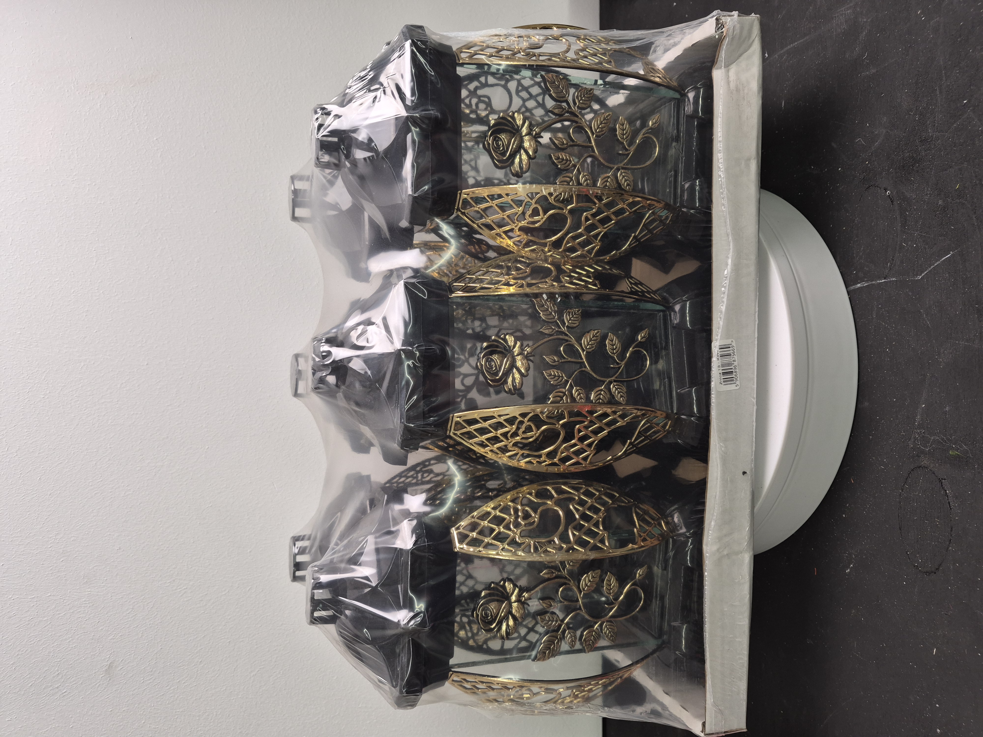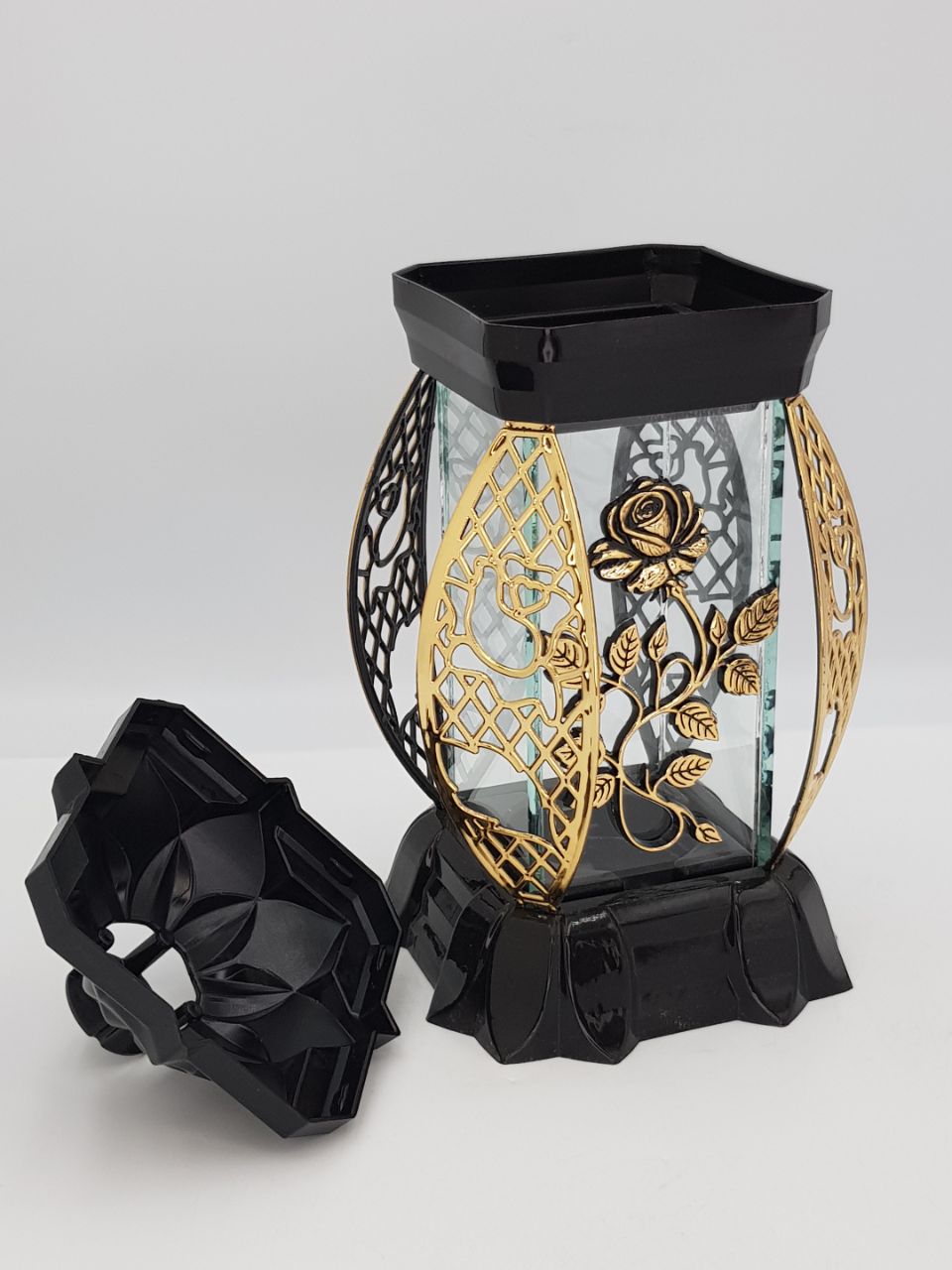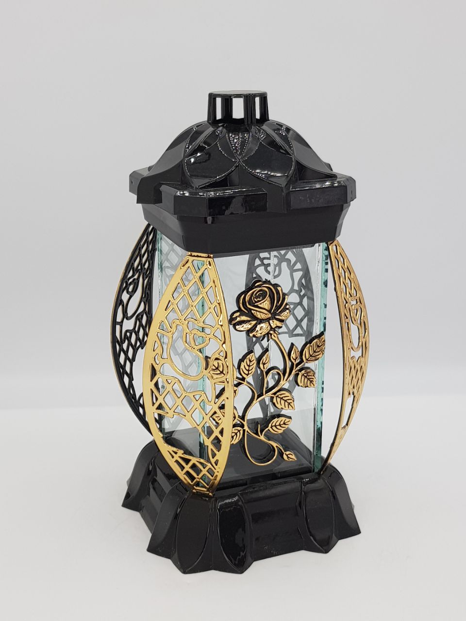 Лампада Пышная Роза золото KWIAT (размер 26х12х12, корпус прямоугольный, колба плоское прозрачное стекло, пластик черный, Пышная Роза Золото, в упаковке 6 шт.  арт:2519