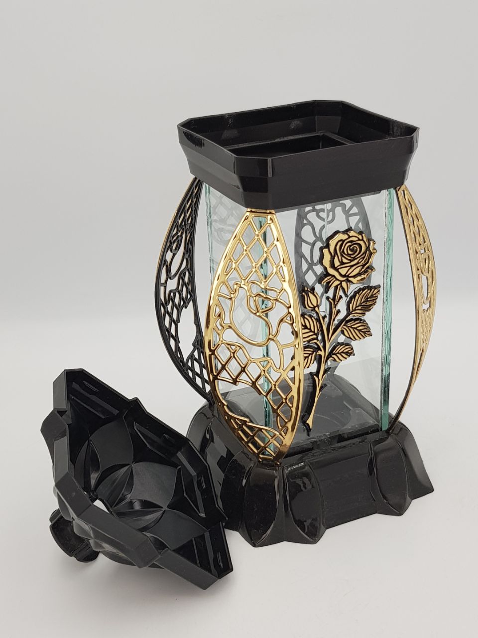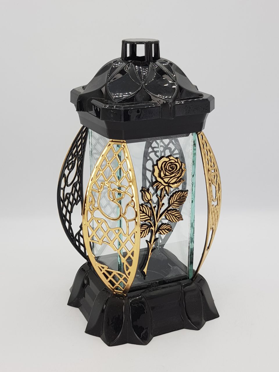 Лампада стеклянная Роза золото KWIAT (размер 26х12х12, корпус прямоугольный, колба плоское прозрачное стекло, пластик черный, Роза золото, в упаковке 6 шт.) арт:2522