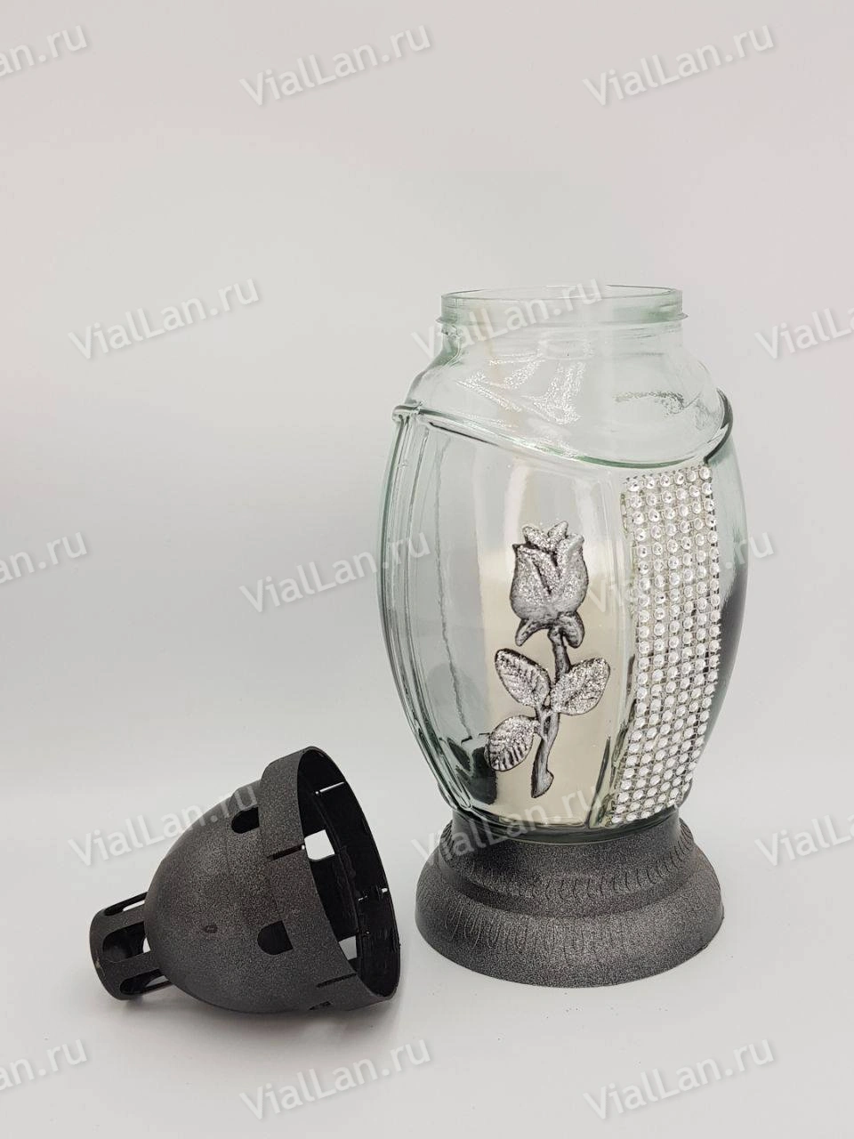 —Лампада стеклянная 087 (30*11*11, материал Пластик+Стекло, цвет серебро) в упаковке 6 штук арт:1903