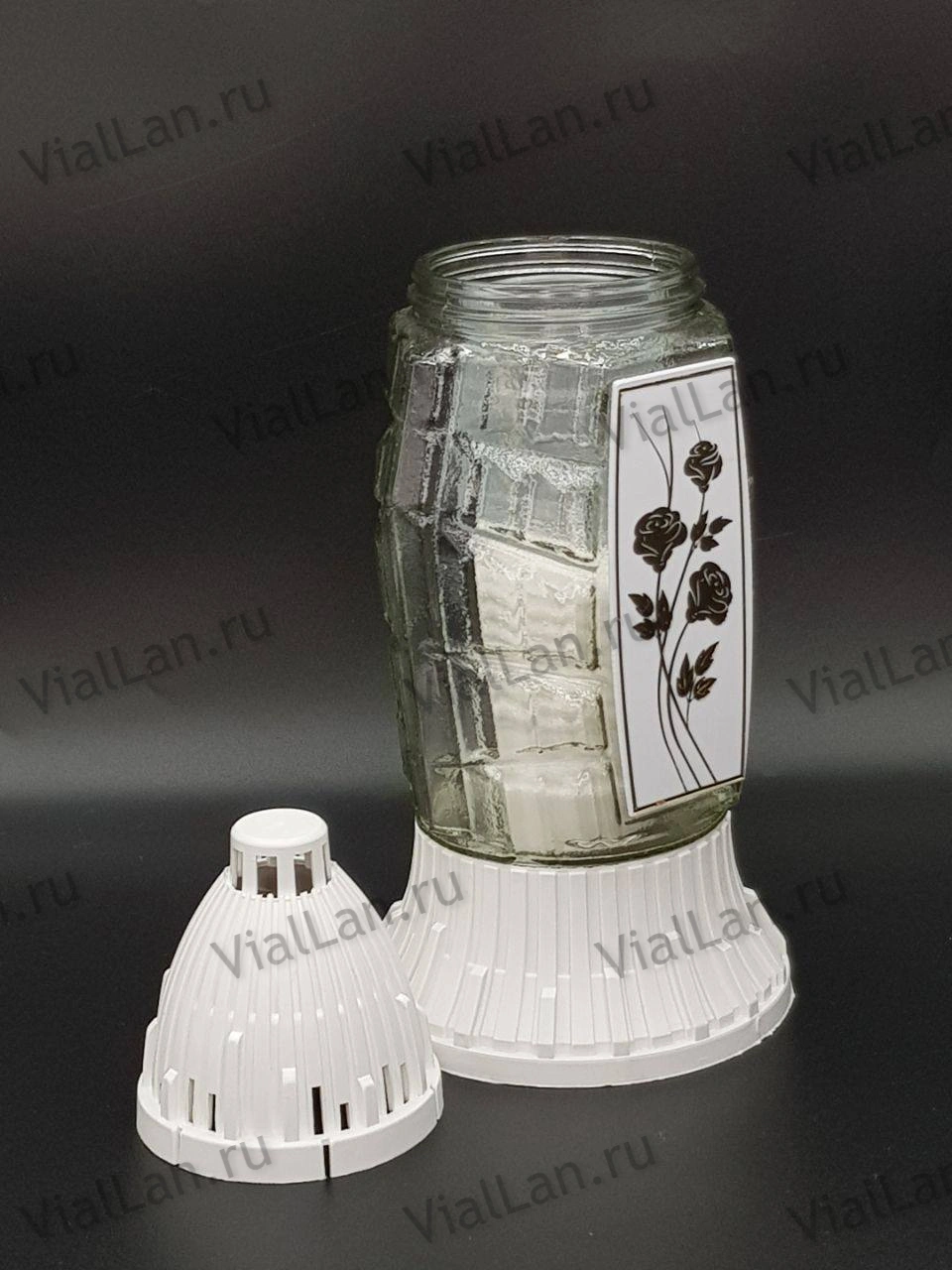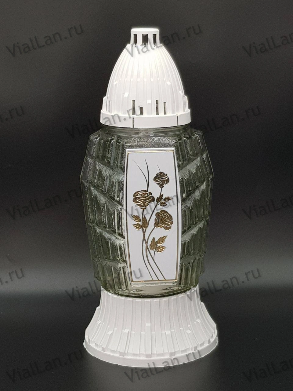 —Лампада стеклянная Роза принт белая (размер ""х""х"", корпус прямоугольный, колба прозрачное стекло, пластик белый, Роза золото, в упаковке 8 шт.) арт:1964
