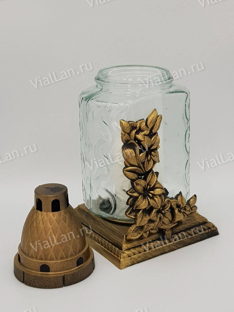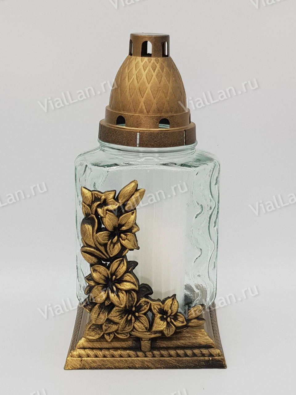—Лампада стеклянная Вьюн цветы (размер ""х""х"", корпус прямоугольный, колба прозрачное стекло, пластик бронза, Вьюн цветы бронза, в упаковке 6 шт.) арт:1967