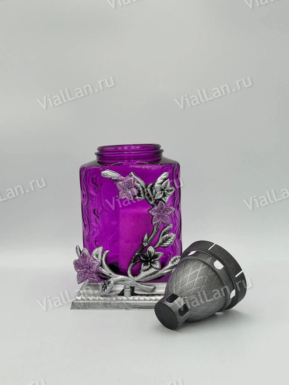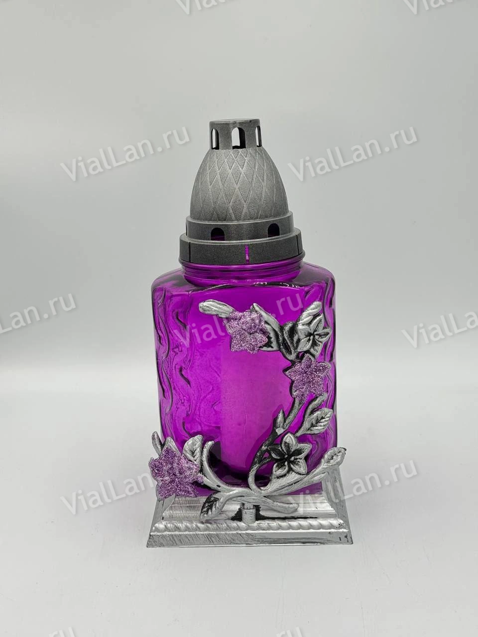 —Лампада стеклянная Вьюн цветы (размер ""х""х"", корпус прямоугольный, колба фиолетовое стекло, пластик серебро, Вьюн цветы серебро, в упаковке 6 шт.) арт:1981