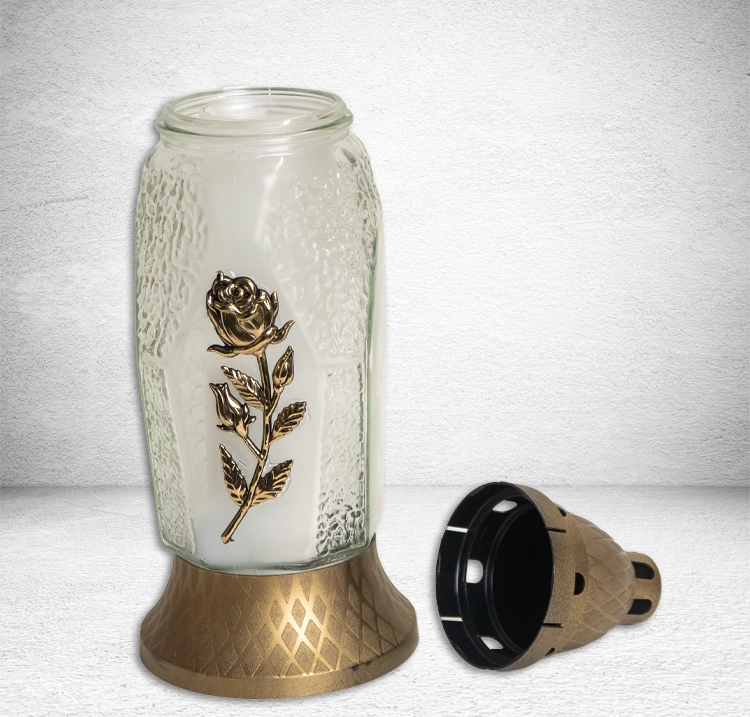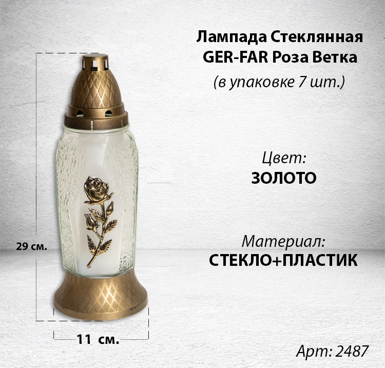 —Лампада стеклянная Роза Ветка золото GER-FAR (размер 29х11, корпус Свеча, колба прозрачное стекло, пластик бронза, роза золото, в упаковке 7 шт.)арт:2487