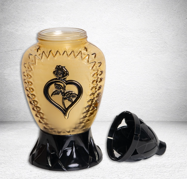 Лампада стеклянная Сердце Роза Znicz (размер 26х10,5, корпус овал, колба прозрачное желтое стекло, пластик черный, Роза Сердце золото, в упаковке 8 шт.) арт:2495