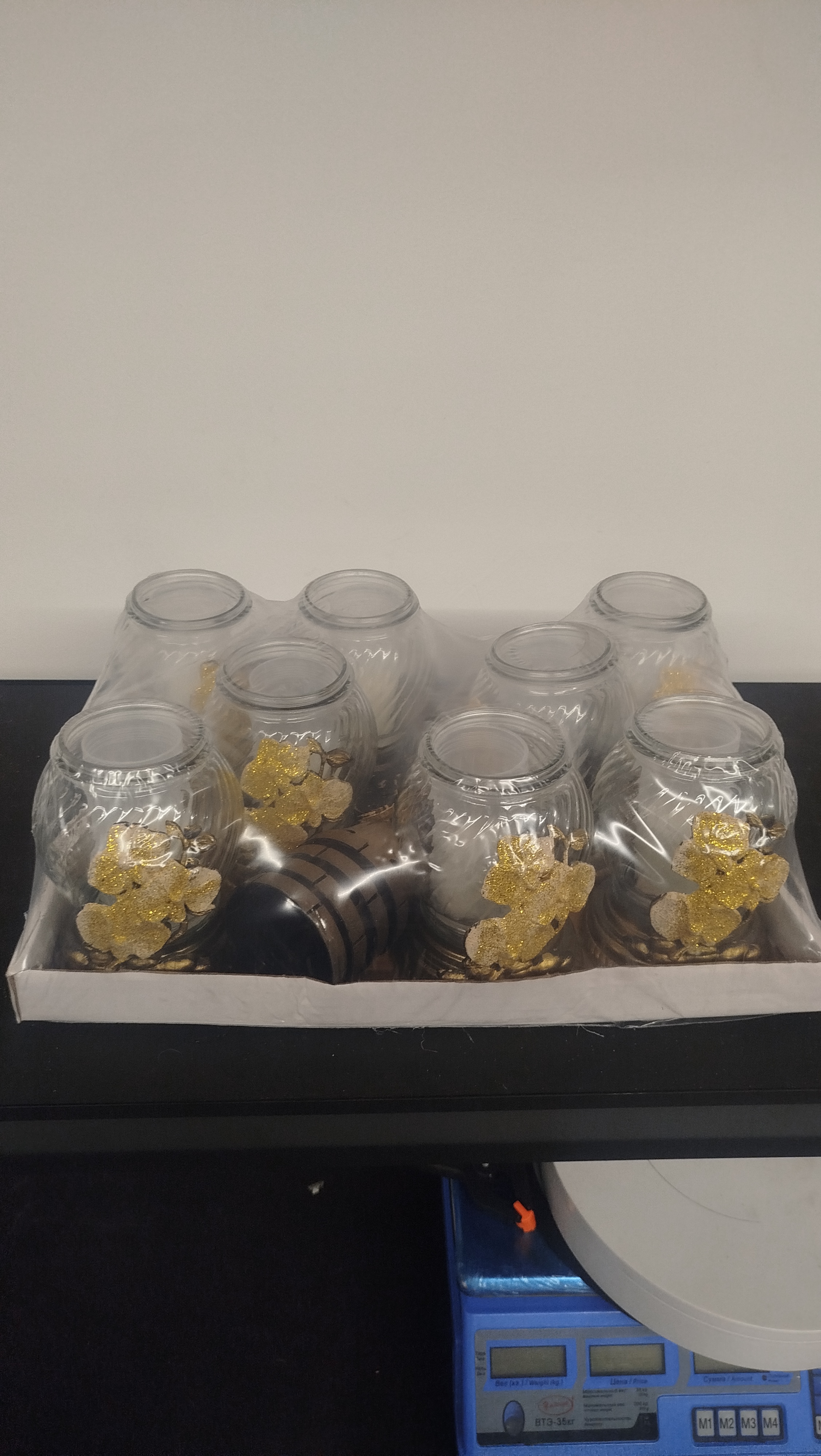 —Лампада стеклянная Цветок Блестки (размер 20х10, корпус шаровидный, колба прозрачное стекло, пластик бронза, Цветок золото блестки, в упаковке 6 шт.) арт:2512