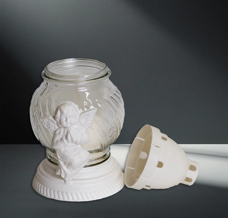 —Лампада стеклянная Ангелок Белый (размер 20х10, корпус шаровидный, колба прозрачное стекло, пластик белый, Ангел цвет белый, в упаковке 8 шт.) арт:2524