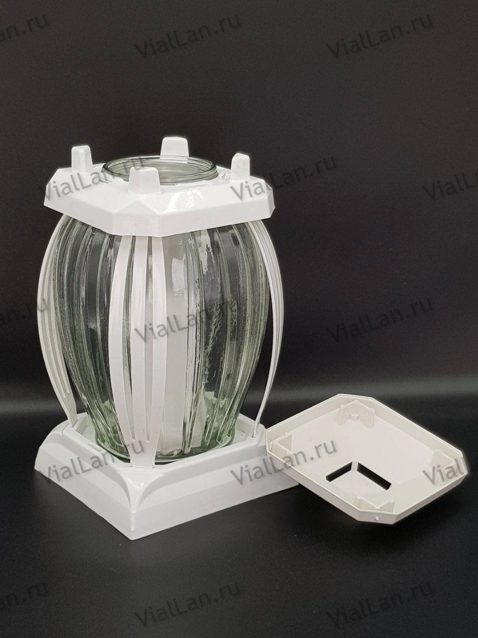 —Лампада стеклянная Белая Prima 2 (25*13*13, корпус овальный, колба рельефное прозрачное стекло, пластик белый, решетка декоративная белая, в упаковке 6 шт.) арт:1902