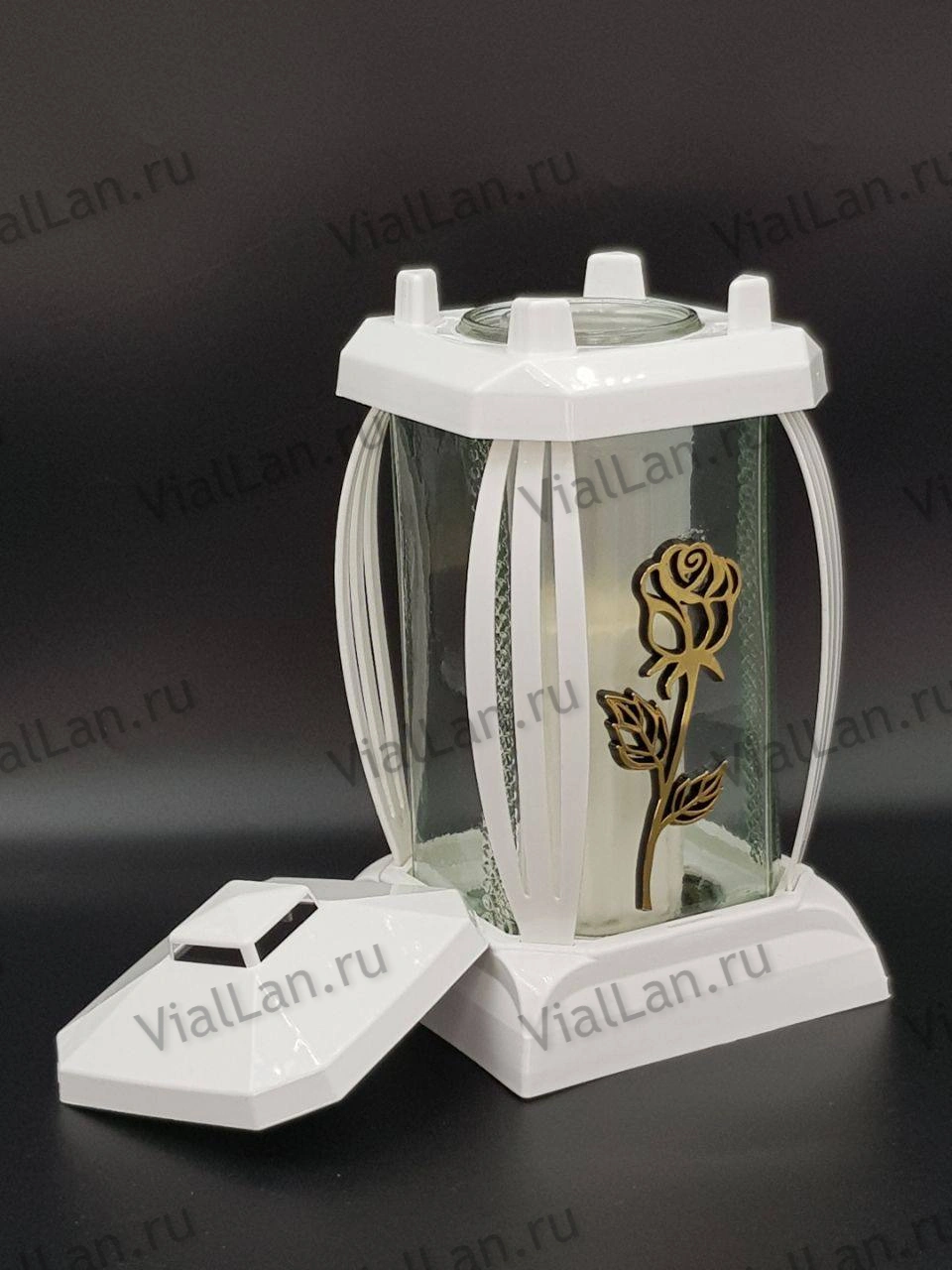 —+Лампада стеклянная Роза Prima 5 (25*12*12, корпус прямоугольный, колба прозрачное стекло, пластик белый, Роза золото, в упаковке 6 шт.) арт:1956
