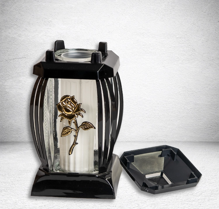 Лампада стеклянная Роза квадратная Prima 3 (24*12*12, материал Пластик+Стекло,  цвет черный) в упаковке 6 штук  арт:2540