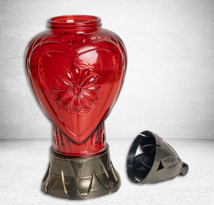 —Лампада стеклянная Znicz Сердце Цветок (размер 30х11, корпус Сердце, колба красное стекло, пластик бронза, в упаковке 7 шт.) арт:2483
