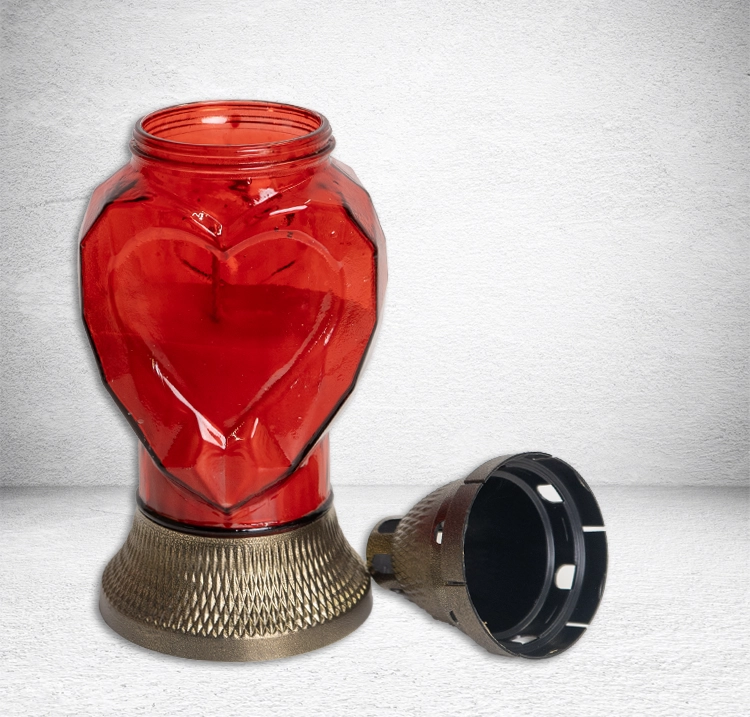 —Лампада стеклянная Сердце красная (размер 25х10 см, корпус Сердце, колба красное стекло, пластик бронза, в упаковке 10 шт.) арт:2496