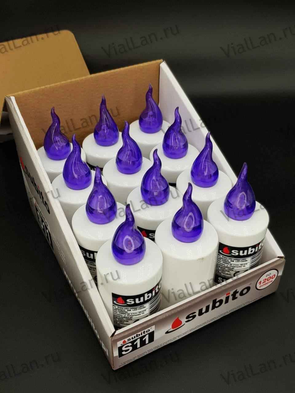 —Свеча лампады электрическая S11 349 Фиолетовый (11*4, Время горения 30 дней, в упаковке 12 шт.) арт:2010