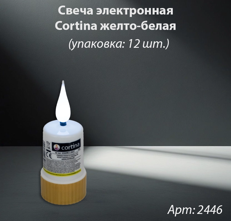—Свеча лампады электрическая Cortina желто-белая (в упаковке 12 шт.) арт:2446