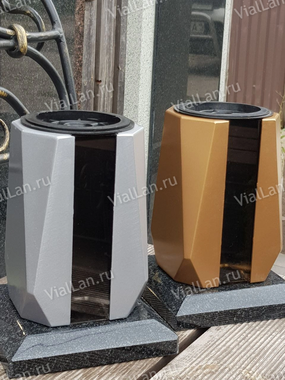 —Ваза Бочка алюминиевая (гранит Габбро, цвет Серебро, с вкладышем) арт:1786